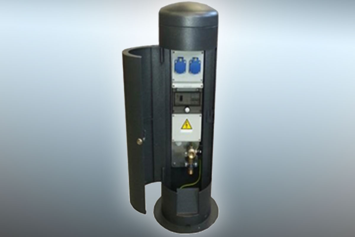 La borne foraine BOMBER est une déclinaison de la borne IRIDE. Caractérisée par une forme cylindrique, elle est surmontée d'une tête bombée. Elle existe avec ou sans porte (avec clé). Elle dispose d'un passage de câbles pour un usage en position fermée; Exemples d'équipement Ci-joint quelques exemples de configuration électrique pour le modèle BOMBER- 250 H 860mm, avec ou sans porte, ou avec le système de prépaiement : Équipement A : 04 prises IEC309 5P 16A avec protection 01 bornier d'alimentation ou câble H07RN-F (standard 3,00 ml) Équipement B : 02 prises IEC309 3P 16A avec protection 01 robinet 1/2" 01 bornier d'alimentation ou câble H07RN-F (standard 3,00 mt) Ci-joint quelques exemples de configuration électrique pour le modèle BOMBER-250 H 860 mm, avec ou sans porte, ou avec le système de prépaiement : Équipement A : 02 prises IEC309 3P 16A avec protection 01 prise IEC309 4P 16A avec protection 01 bornier d'alimentation ou câble H07RN-F (standard 3,00 ml) Ci-joint quelques exemples de configuration électrique pour le modèle BOMBER-325 H 1200 mm, avec ou sans porte, ou avec le système de prépaiement : Équipement A : 02 prises IEC309 3P 16A avec protection 02 robinets 1/2" 01 bornier d'alimentation ou câble H07RN-F (standard 3,00 ml) Équipement B : 01 prise IEC309 4P 32A avec protection 01 prise IEC309 4P 16A avec protection 04 prises IEC309 3P 16A avec protection 01 bornier d'alimentation ou câble H07RN-F (standard 3,00 ml) Ci-joint quelques exemples de configuration électrique pour le modèle BOMBER-325 H 1350 mm, avec ou sans porte, ou avec le système de prépaiement : Équipement A : 04 prise IEC309 43P 16A avec protection 01 prise IEC309 5P 16A avec protection 01 bornier d'alimentation ou câble H07RN-F (standard 3,00 ml) Ci-joint quelques exemples de configuration électrique pour le modèle BOMBER-500 H 1200 mm, avec ou sans porte, ou avec le système de prépaiement : Équipement A : 01 prise IEC309 5P 32A avec protection 01 prise IEC309 5P 16A avec protection 04 prises IEC309 3P 16A avec protection 01 bornier d'alimentation ou câble H07RN-F (standard 3,00 ml) Ci-joint quelques exemples de configuration électrique pour le modèle BOMBER-500 H 1350 mm, avec ou sans porte, ou avec le système de prépaiement : Équipement A : 01 prise IEC309 5P 32A avec protection 03 prises IEC309 3P 16A avec protection 01 robinets 1/2" 01 bornier d'alimentation ou câble H07RN-F (standard 3,00 ml) Équipement B : 01 prise IEC309 5P 32A avec protection 03 prises IEC309 3P 16A avec protection 02 prises RJ 45 Cat.6 01 bornier d'alimentation ou câble H07RN-F (standard 3,00 ml)