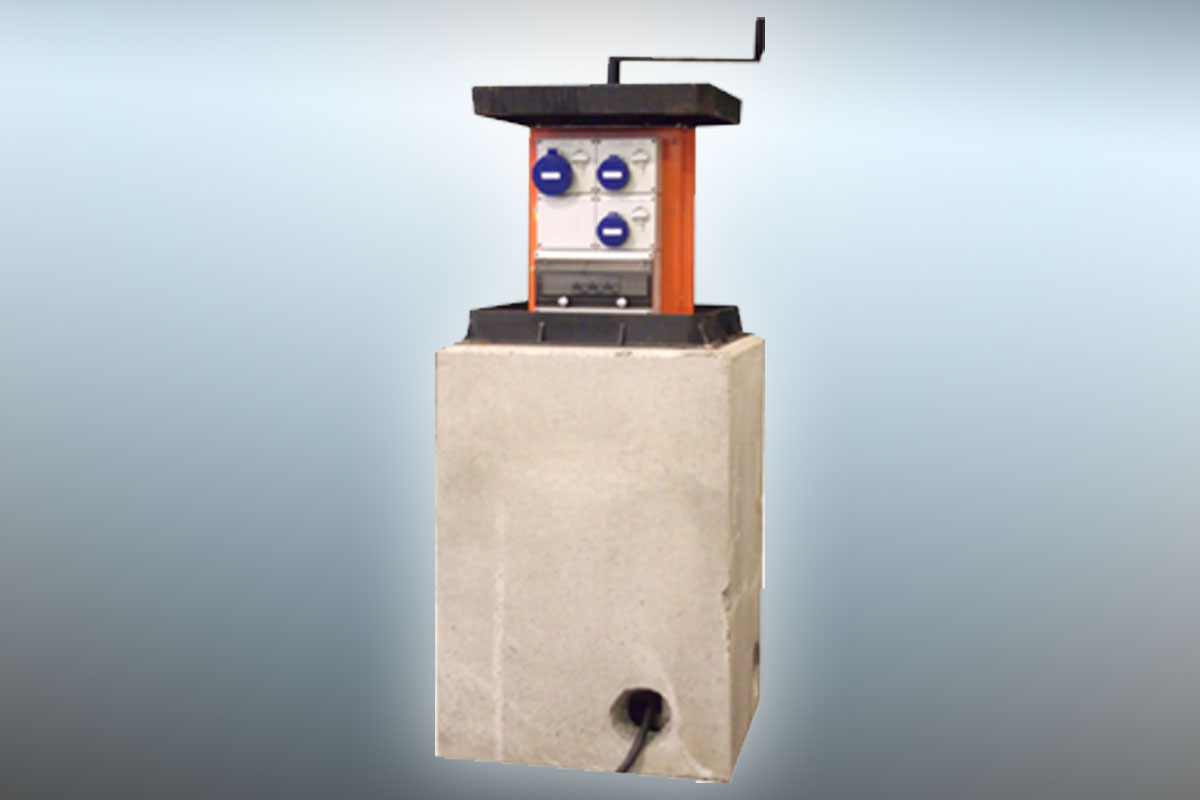 La borne escamotable d'energie VM06 est adapté pour les environnements où son utilisation est occasionnelle et dont la demande de puissance est moyenne. La sortie est manuelle ou semi-automatique, grâce au moyen d'une manivelle, et par verrouillage mécanique en position ouverte. Cette borne d'alimentation peut servir plusieurs sources d'énergies.